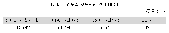 케이카의 매출 비중도 보면 60%가 오프라인에서 발생하는데, 아직까지 국내 중고차 거래 시장은 오프라인이 위주이고, 온라인으로 시장이 넘어가는 과도기라고 보면 되겠네요