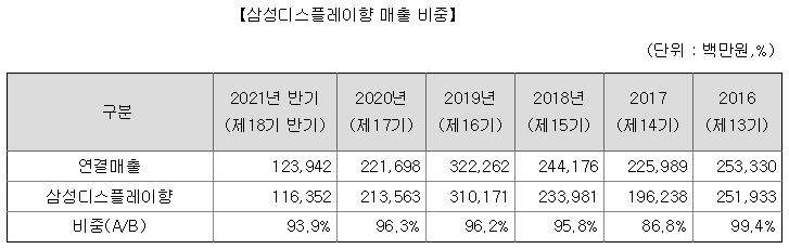 매출의 96%가 스마트폰 디스플레이에서 나오고 있고, 이 제품도 대부분이 삼성디스플레이향으로 납품하고 있는 어떻게 보면 종속 기업으로 보입니다. 스마트폰 부품 회사들이 시장에서 높은 평가를 못 받고 있는 와중에 매출처도 편중되어 있다 보니 높은 밸류를 받기는 어려울 것 같은데, 꼼꼼히 살펴보시죠