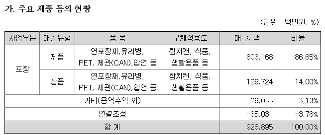 캔, 병, PET 등의 소재 및 상품이 100%인 회사