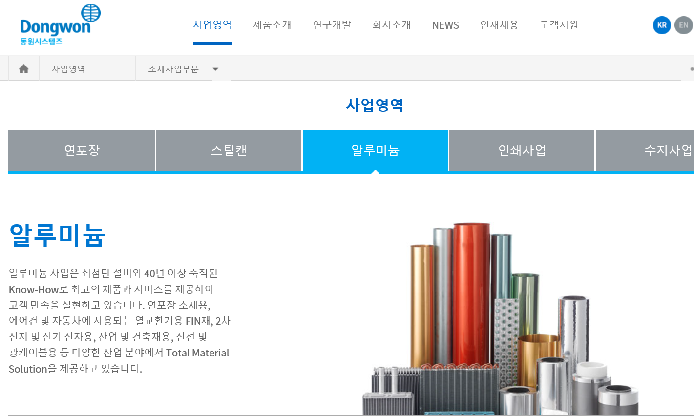 회사는 포장, 스틸, 알루미늄 등을 생산하는 소재 부문과 유리병, 캔, PET 병을 만드는 패키징 부문으로 사업영역이 나눠져 있다. 알루미늄을 활용한 사업 다각화 측면에서 2차 전지는 매력적인 접근 같은 느낌.